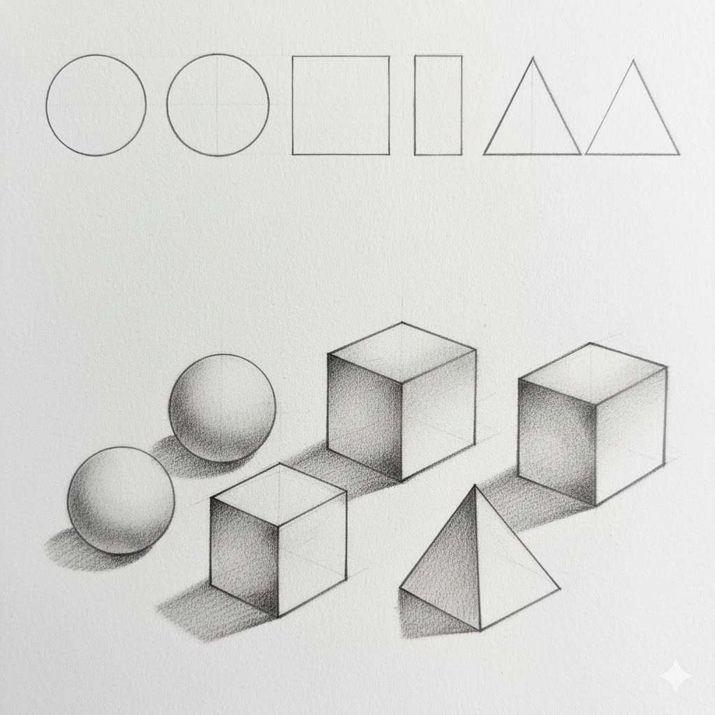 Die gesamte Welt um uns herum lässt sich auf einfache geometrische Grundformen zurückführen: Kugeln, Würfel, Zylinder und Pyramiden. Wenn Sie diese Grundformen beherrschen, können Sie praktisch alles zeichnen!