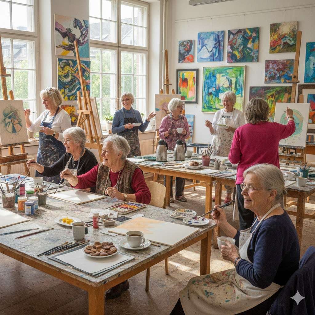 - Austausch und Inspiration: Die gemeinsame Zeit wird zu einem bereichernden Treffpunkt. Es geht nicht nur um Pinsel und Leinwand, sondern auch um den Austausch von Ideen, Erfahrungen und das gemeinsame Lachen.