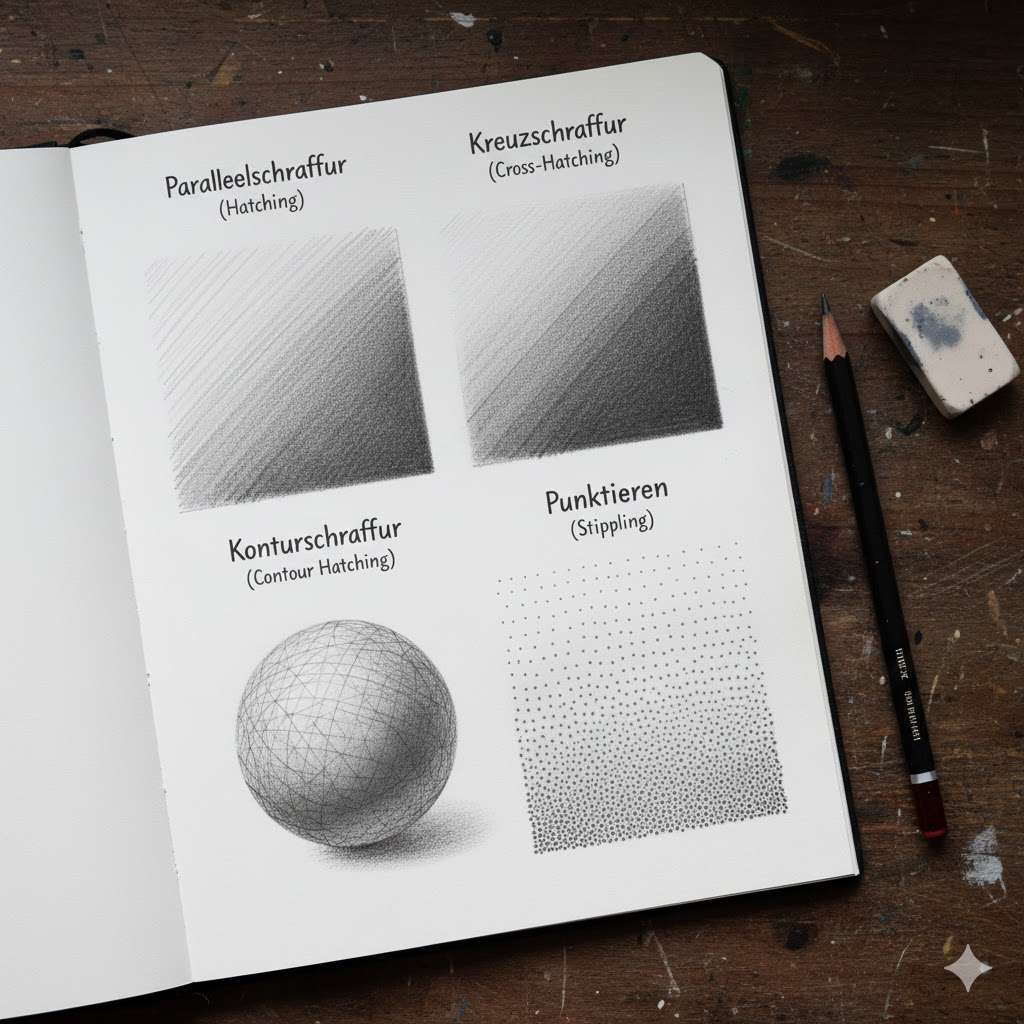 Schraffieren ist weit mehr als nur das Ausfüllen von Flächen. Es ist eine Sprache, die mit Dichte, Richtung und Druck spricht. Lernen Sie die wichtigsten Techniken, um Ihren Zeichnungen Tiefe zu verleihen.