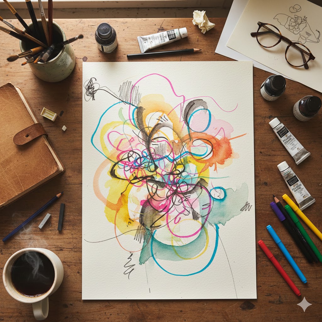 Hast du dich jemals vor ein weißes Blatt gesetzt und dich blockiert gefühlt, weil du nicht wusstest, was du zeichnen sollst? Wir sind oft so darauf konditioniert, Dinge abzubilden – ein Gesicht, einen Baum, ein Haus –, dass wir den eigentlichen Akt des Zeichnens vergessen.
